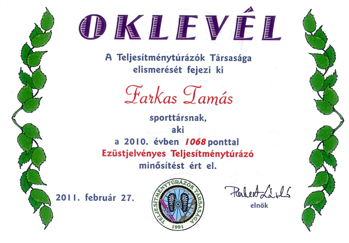 2010. Farkas Tamás teljesítései